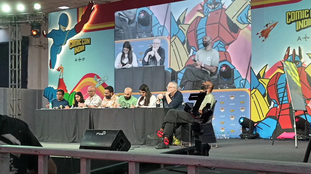One of the most fascinating sessions of the day was the Comic-Con Creator’s Jam featuring Ron Marz, Savio Mascarenhas, Saumin Patel, Indian Scribbles, Roshan Kurichiyanil, and Satan Navi. It was not just a casual panel. It was a live demonstration of craft.